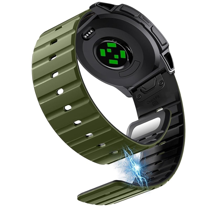 Magnetic Silicone Band Compatible with Garmin Instinct 3/2/Solar/Tactical/Tide/Esports 45mm 50mm,26mm 22MM Quick Fit Release Rugged Instinct Bands for Men Women (Army Green, 45mm/22mm)