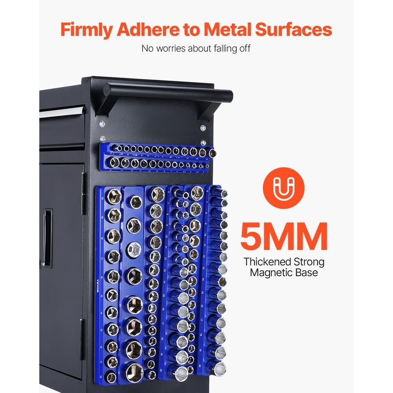 Strong Magnetic Base: Featuring a robust 5mm thick magnetic base composed of ferrite and CPE, our socket organizers for toolbox provides strong, stable attachment to metal surfaces, keeping sockets trays firmly in place without slipping.
