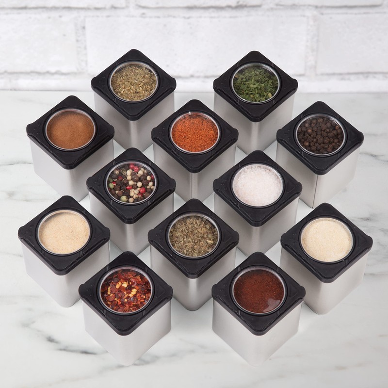 Magnetic Spice Jars- Shake or Pour Containers Attach to Most Refrigerator Doors- Set of 24 Dispensers- Easy Open Window Top Shakers