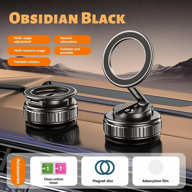- 【Stable and rotatable】Vacuum Magnetic Car Phone Holder is 360° Rotation & Dual-Axis Adjustment,360° rotating rod + 180° dual-axis folding arms for unlimited viewing angles. Switch between portrait/landscape modes instantly. Compact foldable design saves 50% space.