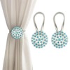 Magnetic Tiebacks for Curtains, 2 Pack Sparkling Crystal Flower Curtain Tiebacks Curtain Buckle Clips with High-Elastic Spring Wire for Home Office Decoration (Peacock Blue)