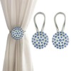Magnetic Tiebacks for Curtains, 2 Pack Sparkling Crystal Flower Curtain Tiebacks Curtain Buckle Clips with High-Elastic Spring Wire for Home Office Decoration (Royal Blue)