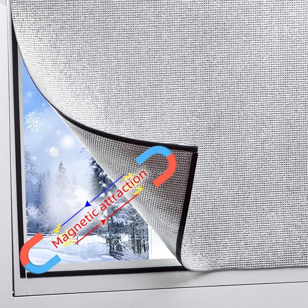 Magnetic Window Insulation Kit Suitable for Summer and Winter, Heat Reflective Window Film and Magnetic Strip Kit Suitable for Windows,RV Windows,Self Adhesive Easy Installation (48"x72"(122x183cm))