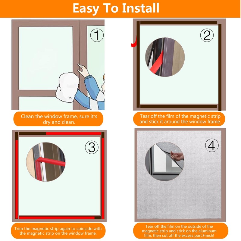 • High quality materials: The structure of our window insulation layer is aluminum foil on both sides and 3mm polyethylene foam in the middle. Our kit is equipped with magnetic strips, which have good magnetic attraction for better installation and fixation, preventing detachment