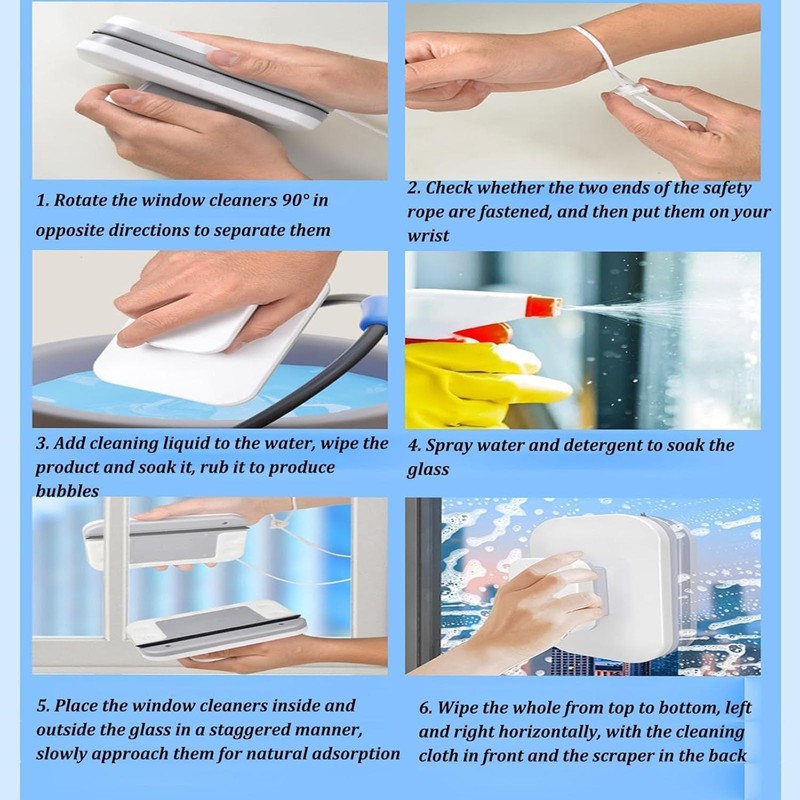 - 【Windshield Cleaner Tool】: Our double sided window cleaner tool,Say goodbye to struggling with traditional window cleaning methods - the Magnetic Window Cleaner offers a firm attachment and ergonomic design for effortless operation.