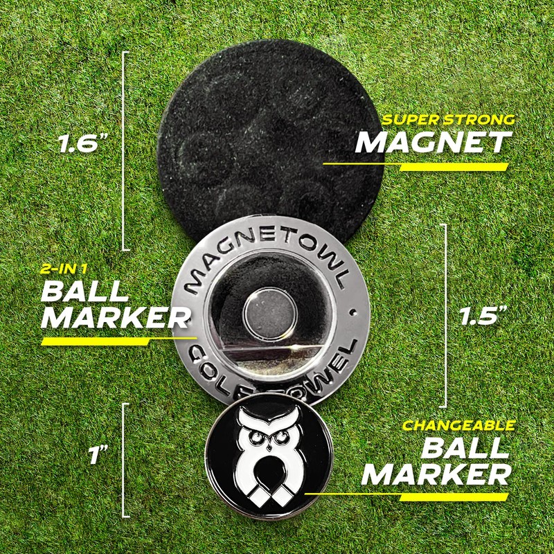 - ✔ 2-IN-1 BALL MARKERS: Made of raised high-quality metal add versatility to our golf towel magnet. Unique in function and form, MagnetOwls make thoughtful golf gifts for men and women who love golf equipment and gear.