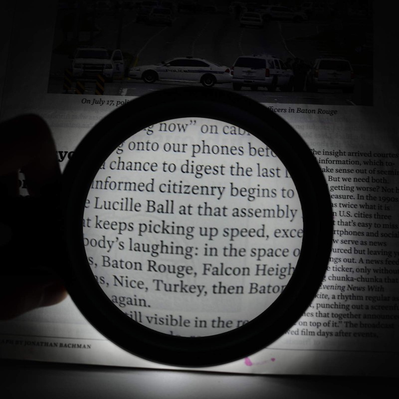 - LED MAGNIFYING GLASS: This handheld magnifier with 12 pcs LED lights,12 Built-in energy-efficient LED lights are designed to ensure an overall better reading experience. Which is particularly helpful for people with macular degeneration or far-sightedness/feyopia.