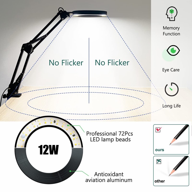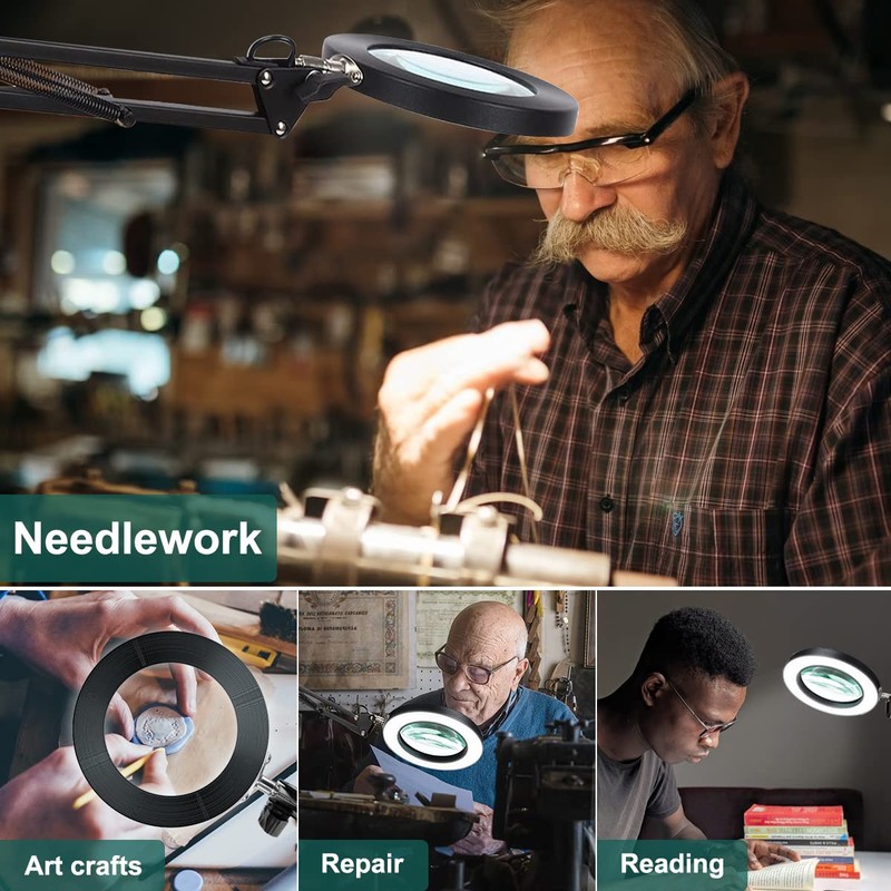 - 【Eye Protection and Energy-Saving】Magnifying lamp adopts a ring design with 72pcs built-in high-brightness LED provides you with an even, soft light and a large area of illumination. Without glare and flicker, the uniform light also prevents eyes fatigue and hurting. It's the perfect gift for people with low vision, elderly and those who need to constantly focus on close work.