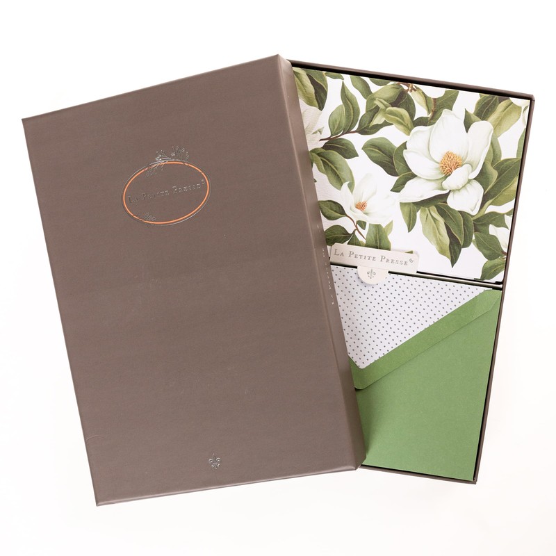 Magnolia Designer Cards by Graphique Luxe Collection, Silver Foil Embossed Stationary Boxed Set, 10 Blank Cards with 11 Envelopes, All Occasion Greetings, 5.25" x 3.8"