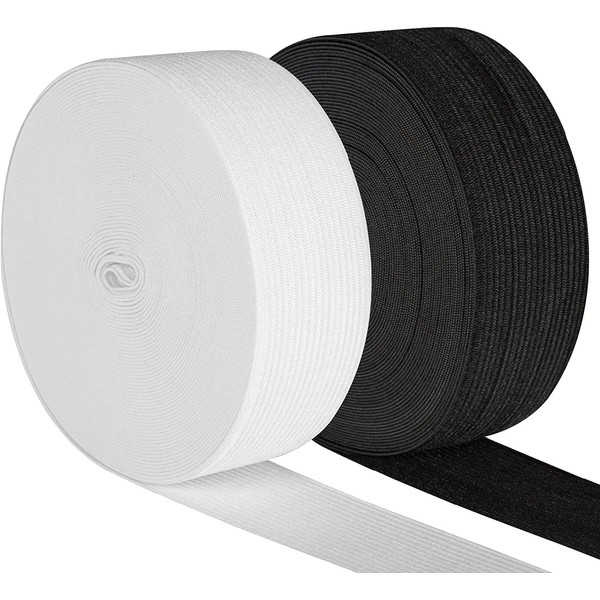 Magnoloran 2 Pack 20 Yard 2 Inch Wide Sewing Elastic Band Knit Elastic Spool Braided Elastic Heavy Stretch High Elasticity for Sewing Pants Waistband, Wigs, Skirts, Craft DIY Projects (Black&White)