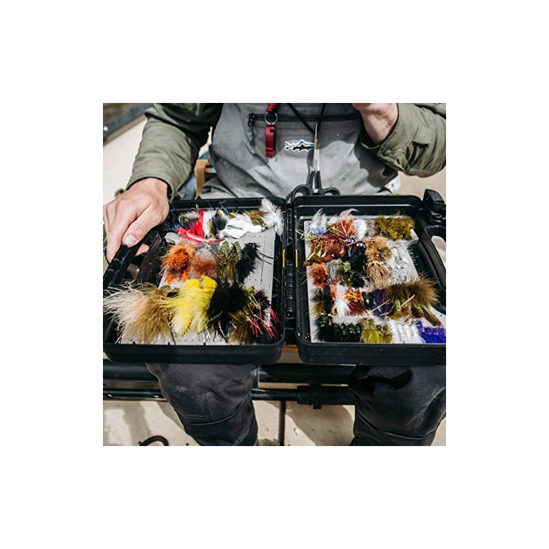 - Internal slotted foam on top lid and bottom organizes flies securely