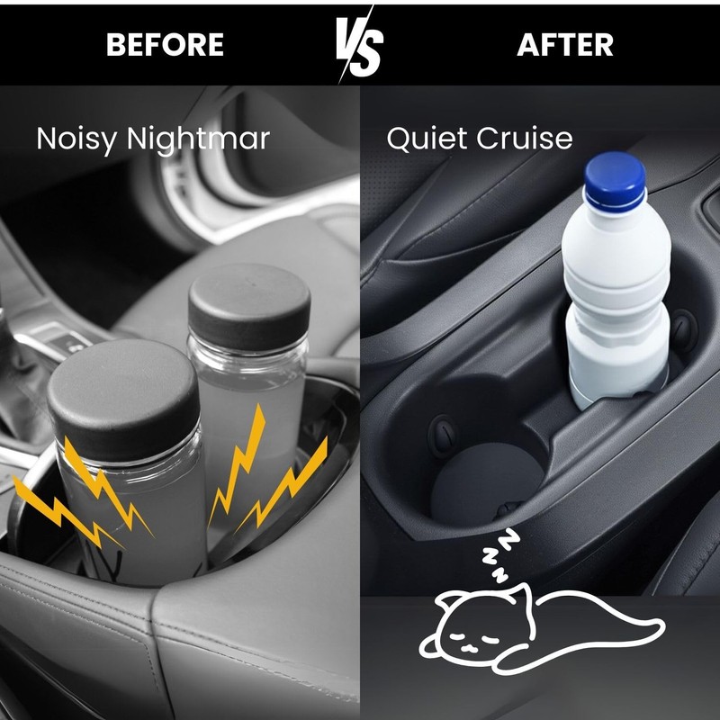 • Reduces Noise and Vibration: Textured anti-slip rubber coasters absorb road vibrations and prevent rattling, delivering a quieter and more refined driving experience.