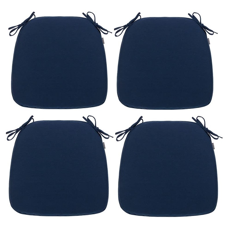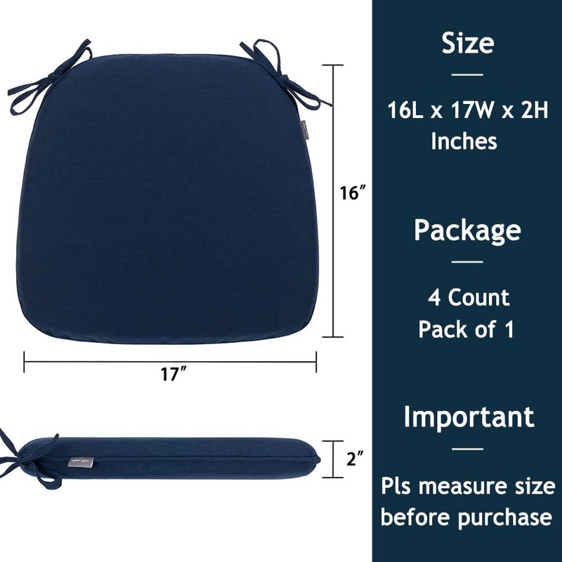 Magpie Fabrics 17"x16"x2" U-Shape Chair Cushions with Ties 4 Count, Outdoor Indoor Waterproof All Weather Seat Pads Decoration for Patio Garden Dining Office - Navy