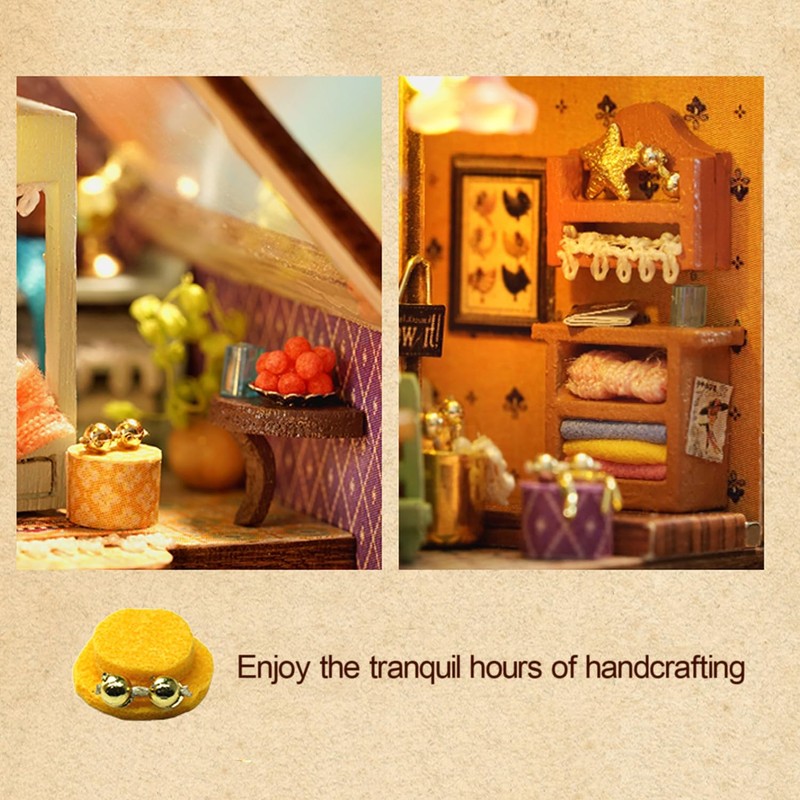 - 3.Package includes: all furniture & materials shown,the LED light,plants, ornament, furniture are quite realistic and cleverly designed.All the materials are almost the same as real house so cute and beautiful.