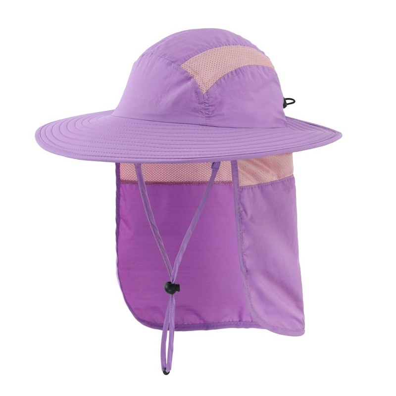 Magracy Men's UPF 50+ Sun Hat with Neck Protection Wide Brim Mesh Safari Hat Fishing Hat, purple
