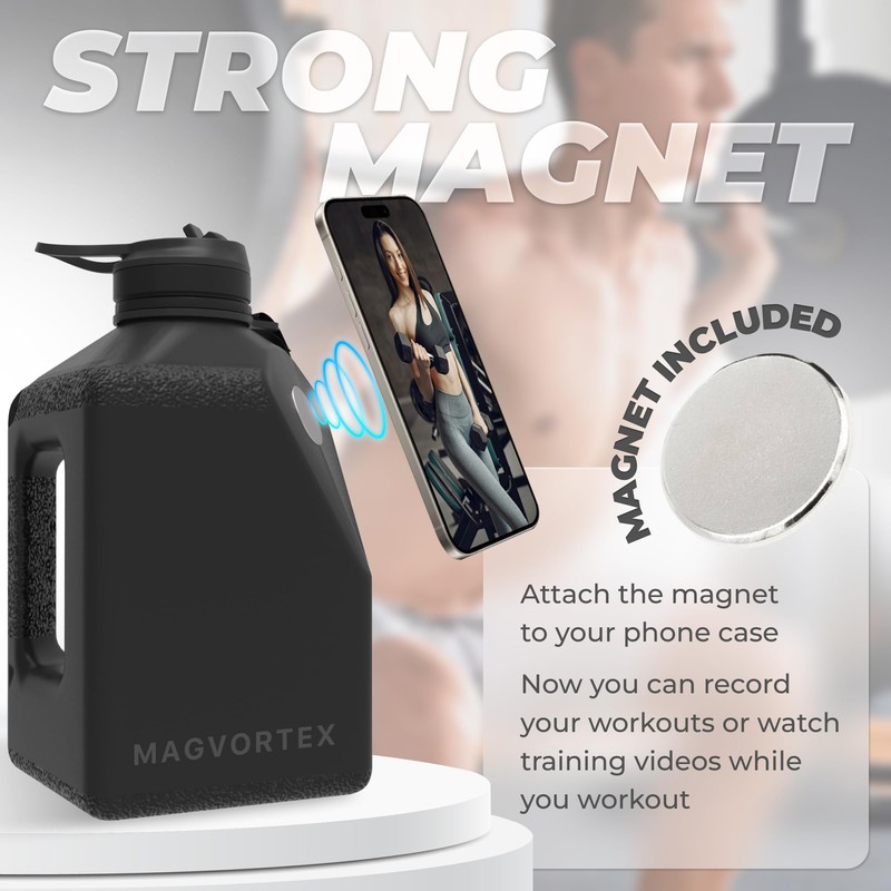 Magvortex Water Bottle 91oz, BPA-Free Plastic, Magnetic Phone Holder, Compatible with MagSafe, Leakproof Flip-Top Lid, Large Insulated Chug Bottle for Hydration, Gym, Hiking & Daily Use