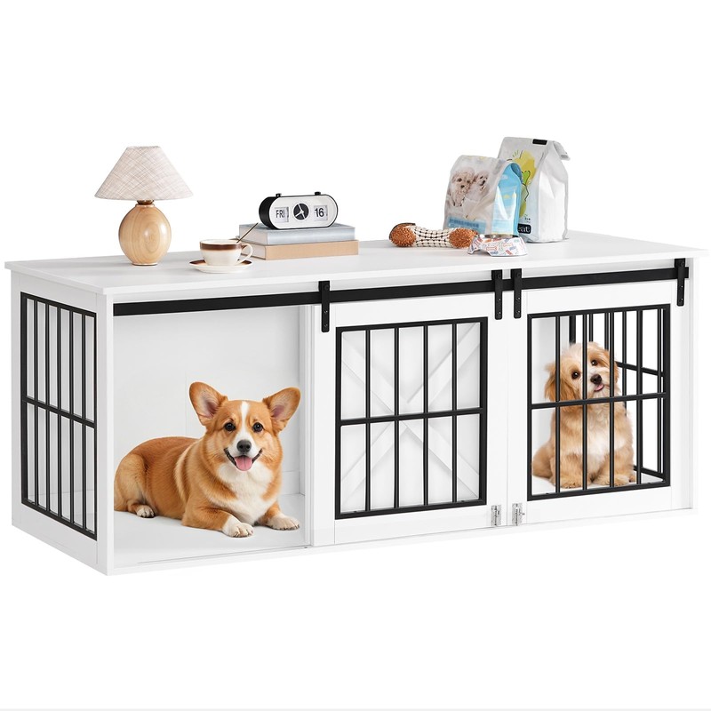 - Functional Barn Doors: This dog kennel furniture features two sliding barn doors to ensure your pets can move in and out with ease, which enhances the aesthetic appeal of your living space and makes the crate a beautiful addition to any room