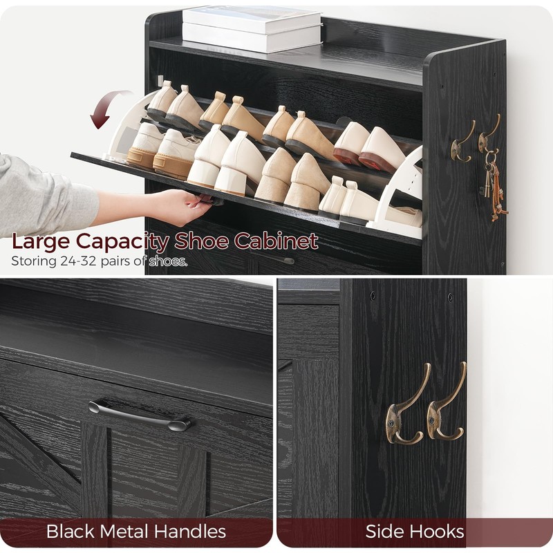 MAHANCRIS Shoe Storage Cabinet, Shoe Organizer with 2 Flip Drawers, Hidden Shoe Storage for Entryway, Freestanding Shoe Cabinet Organizer with Open Storages, Black SHHB9401