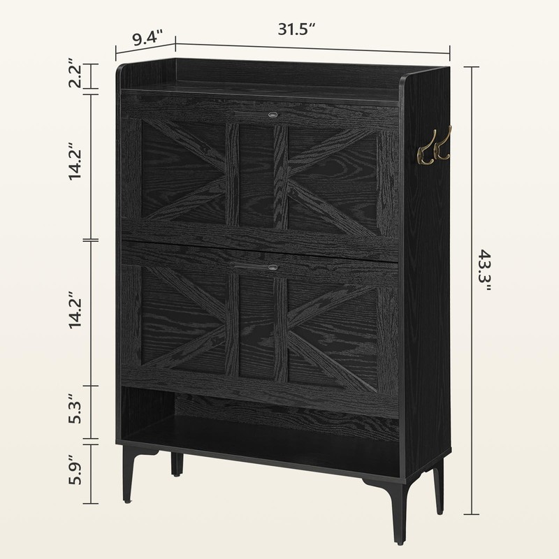 - Stable Structure: Sized in 31.5''L x 9.4''W x 43.3''H, constructed with premium engineered wood and metal, this hidden shoe storage cabinet is sturdy and durable. It has a strong load-bearing capacity and is equipped with 4 metal feet and L-shaped patches to prevent shaking