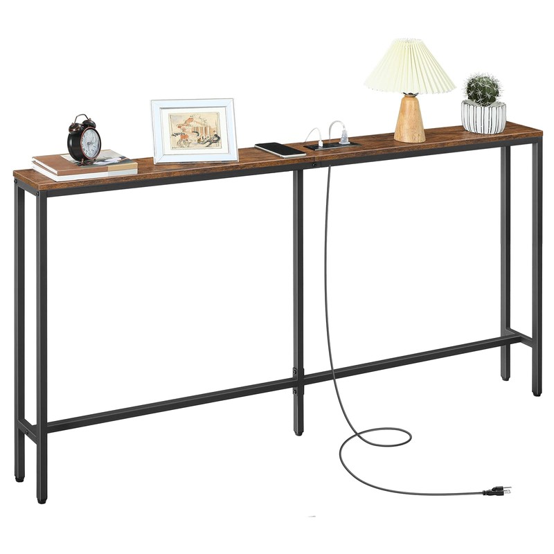 MAHANCRIS Skinny Console Table with Power Outlets, 63" Narrow Sofa Table, Behind Couch Table with Charging Station, Sofa Hallway Table for Plants, Living Room CTHR165E01Z1, 5.9"D x 63"W x 31.7"H