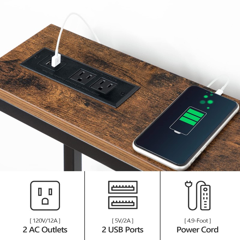 - Sofa Table with Power Strip: The console table comes with built-in 2 plug outlets, 2 USB ports and a 59’’ power cord. The table top panel can be rotated, you can choose to place the power strip on the side or in the middle of the table as needed. With all the functions required for charging, the sofa table is ideal for your mobile phone, laptop, lamps and other electronic devices