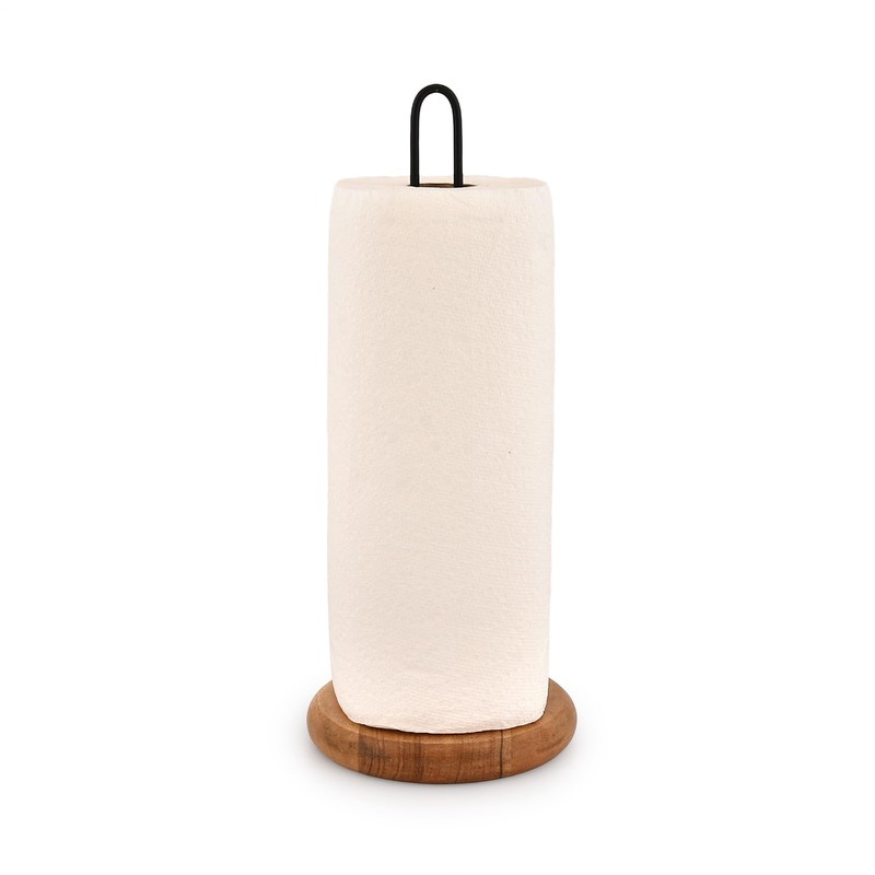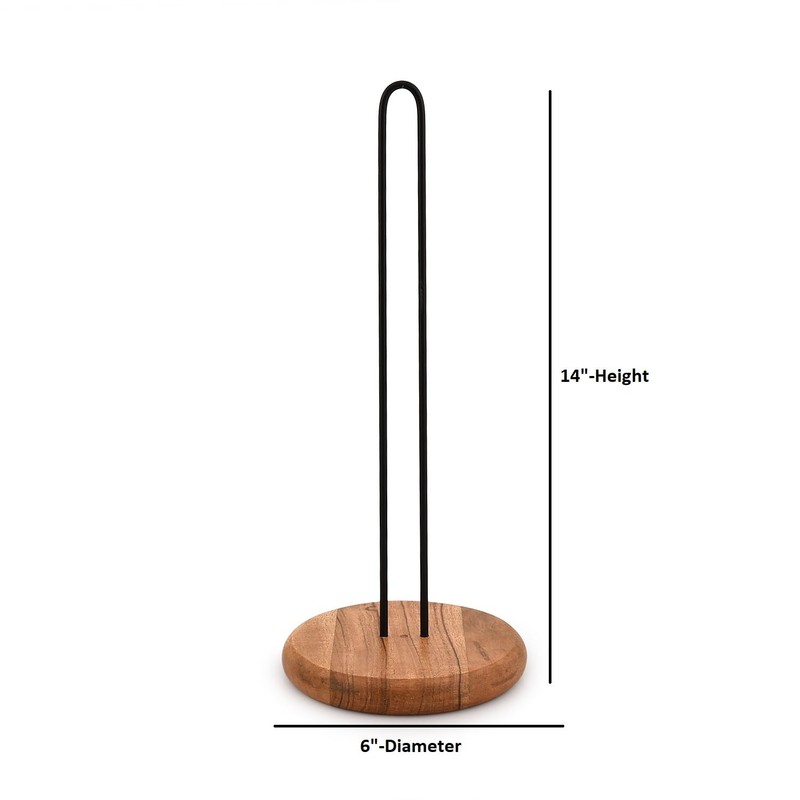 • Upgrade your kitchen with our beautifully crafted wooden paper towel holder. Made from high-quality Iron & Accaia Wood it features a sleek and simple design that complements any kitchen decor.
