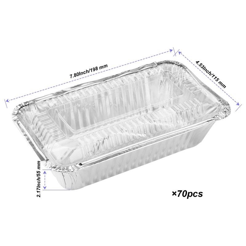 - MULTI-PURPOSE - Comes with 70 aluminum loaf pans and 70 clear plastic lids, the pan measures 7.8 x 4.53 x 2.17 inches and has a capacity of 680ml. The aluminum baking pans are suitable for any occasion and are ideal for household, catering, take-out, banquets, picnics, and more.