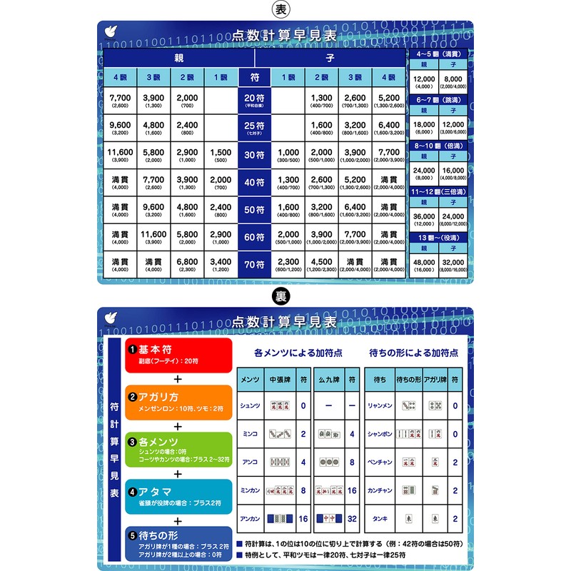 Not only does it provide a quick reference of the marks, but it also includes calculations that combine Agari, Menz, Atama, and Wait.