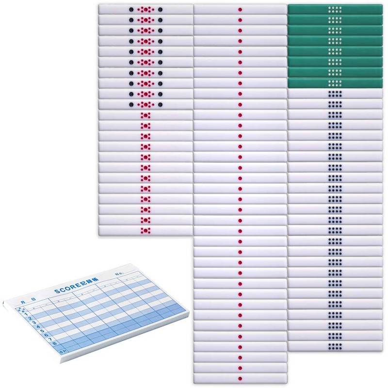 Mahjong White Dot Stick Full Set + 8 Levels, 100-Sheet Score Record Book, Includes 1 Score Book