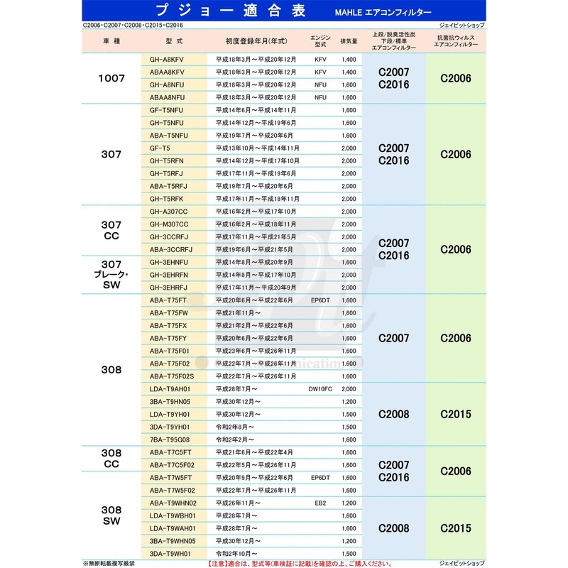 MAHLE Air Conditioner Filter, Antibacterial, Antiviral, Peugeot, Citroen, 307, 307CC, 307SW 308, 308CC, 1007, RCZ C2, C3, C4, DS4, MAHLE C2006, Pollen Removal, Deodorizer, PM2.5 Removal, Dust Mite