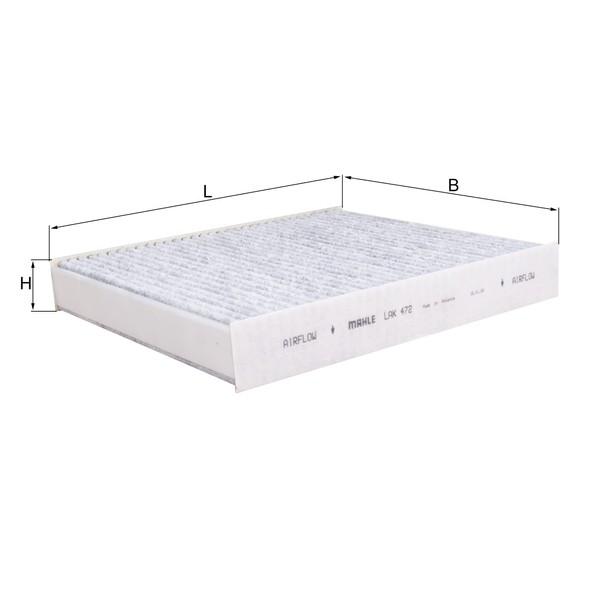 - MAHLE cabin air filter LAK 472 // carbon activated pollen filter // Dimensions (mm) L: 240, W: 205, H: 35 // Premium filter in OE quality