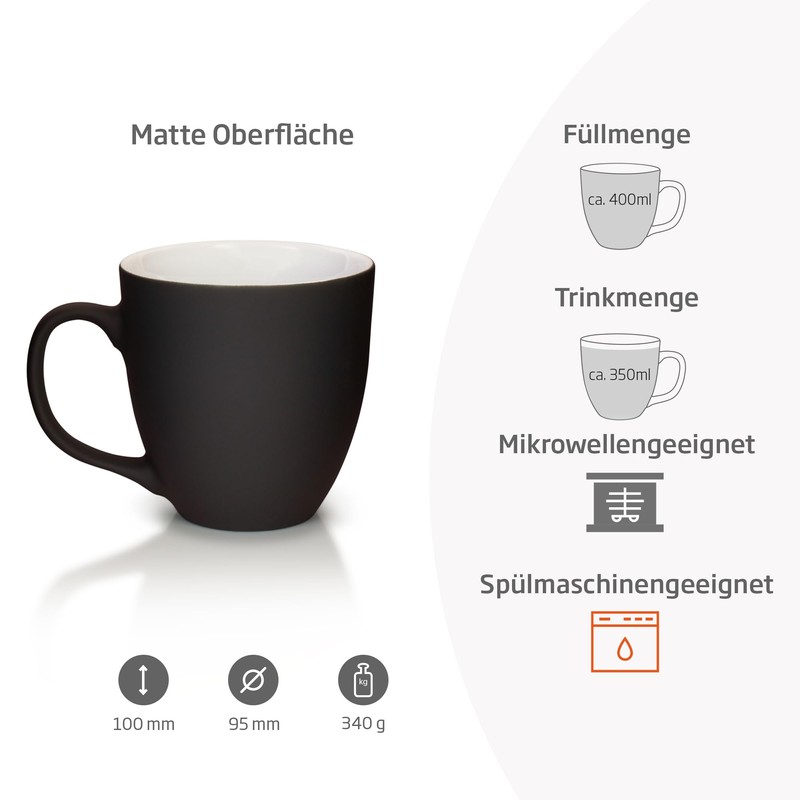 - Large coffee mug, capacity approx. 400 - 450 ml (variations in the natural product possible)