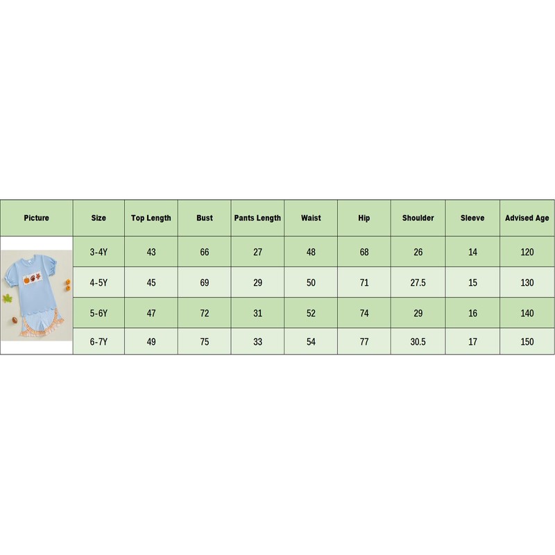 6-12M Length: 13.39 Bust: 24.80 Shoulder: 11.81 Sleeve: 9.45 Advised Age: 6-12 Months