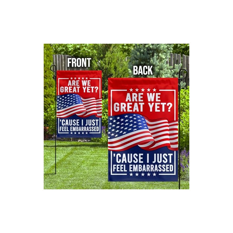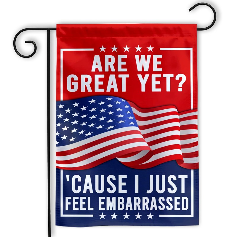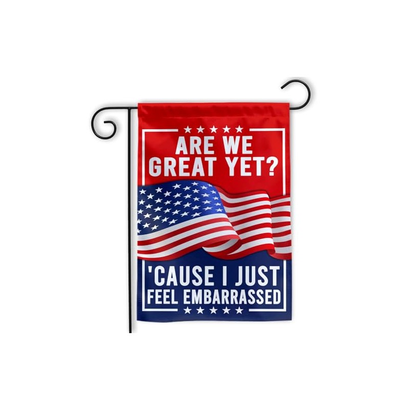 MAIANEY (12"x18") Are We Great Yet Cause I Just Feel Embarrassed Flag Are We Great Yet Garden Flag Funny Anti Felon Patriotic Political Gifts Outdoor Decorations Yard House Patio Porch Double Sided