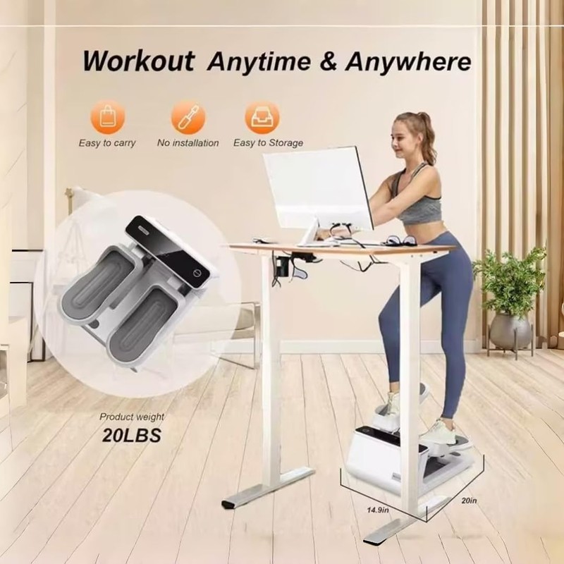 - Compact & Ready to Use: Measuring just 20" x 14.9" x 9.4", this mini stepper fits into tight spaces and requires no assembly. Use it as an under desk stepper for under desk exercise or as a portable elliptical for quick, hassle-free workouts anytim