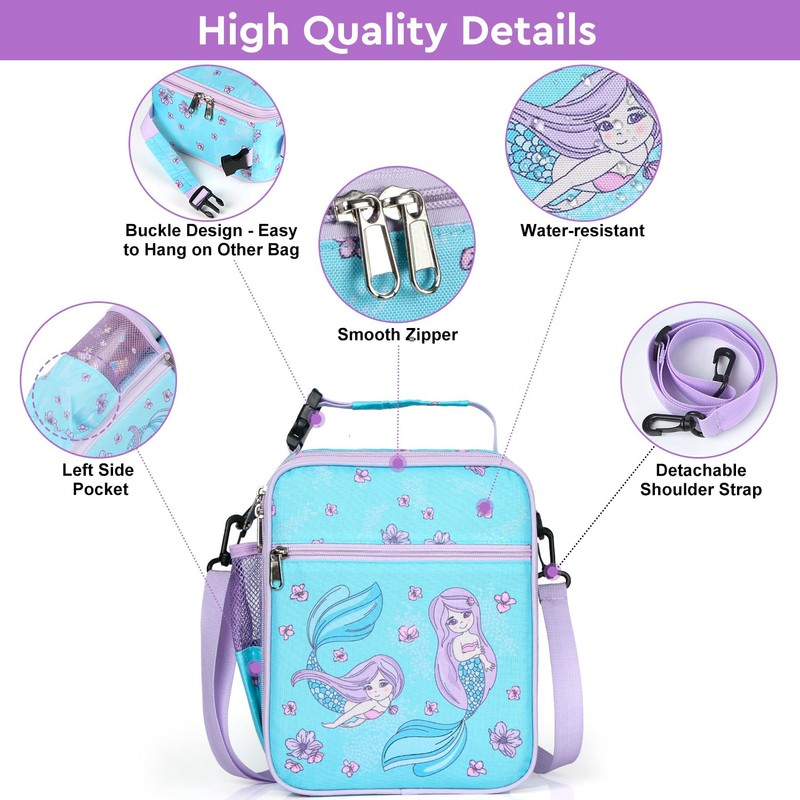 Maidyna Kids Lunch Bag, Reusable Lunch Bag with Adjustable Strap, Insulated Picnic Bag for Adults at Work, Children at School (Blue Mermaid)