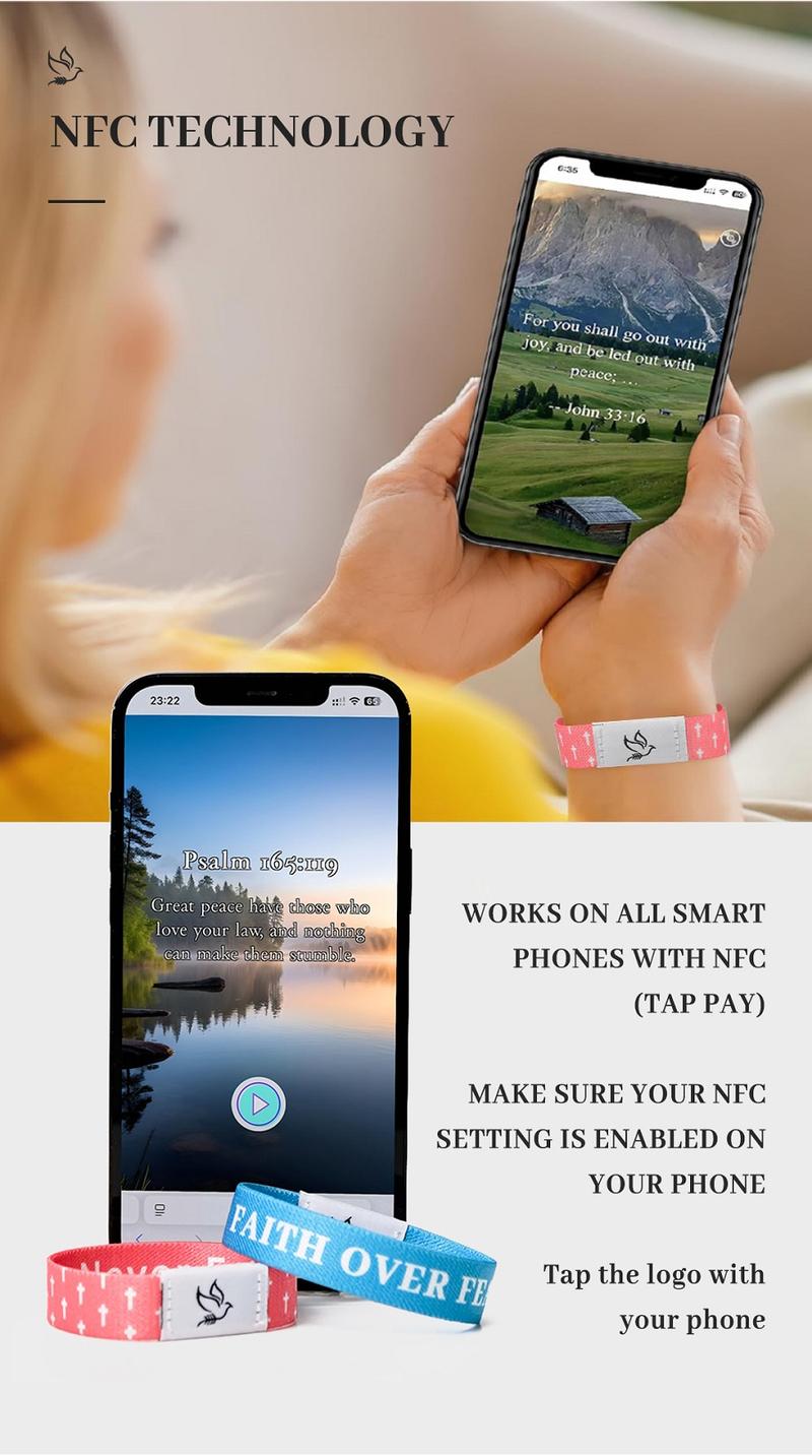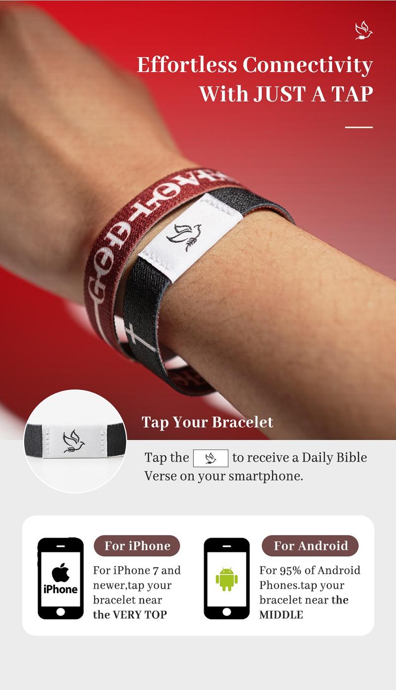 【Maige】Daily Bible Verse Bracelet Christian Bracelet Jesus Bracelet Elastic cord wristband NFC - Color: Love Never Fails