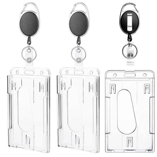 - [What You Get]: Package including 3 pcs vertical style clear plastic badge holders and 3 pcs badge reels.Vertical 2-Card Badge Holder,Internal size: 8.7 x 5.6 CM. Holds 2 standard credit cards measuring 5.5X8.6CM. Ideal for IDs, Driving Licences, Badges, Passports etc. WILL NOT FIT THICKER CARDS!