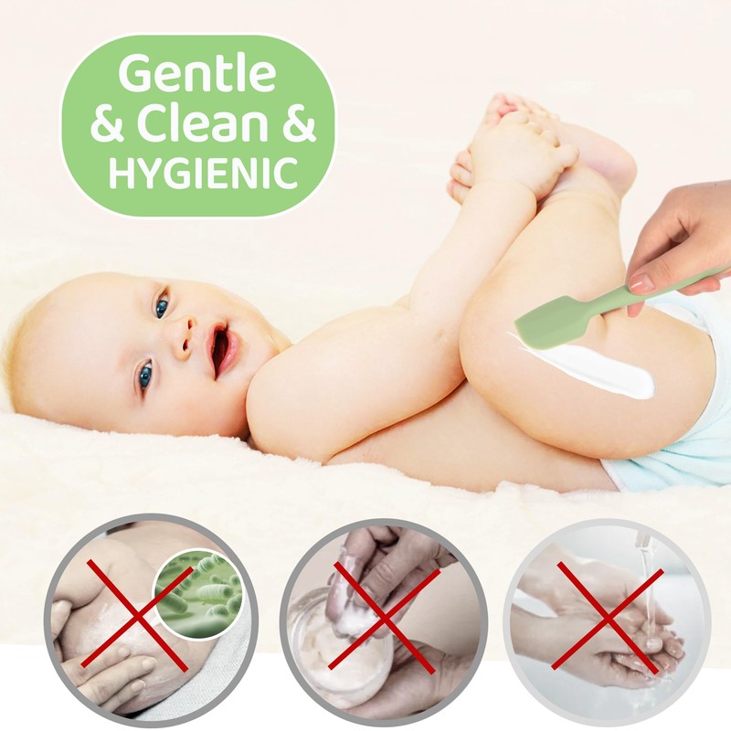 - MAKE CARING FOR BABY EASY: Baby spatula for diaper cream is made of high-quality silicone. Ergonomic textured silicone handle for a comfortable,lightweight grip. Diaper rash spatula butt cream spatula easy for parents to hold. Baby butt spatula butt paste applicator attach to any flat surface,allowing parents to continue changing diapers with both hands. Diaper rash cream spatula is baby essentials must haves newborn essentials.