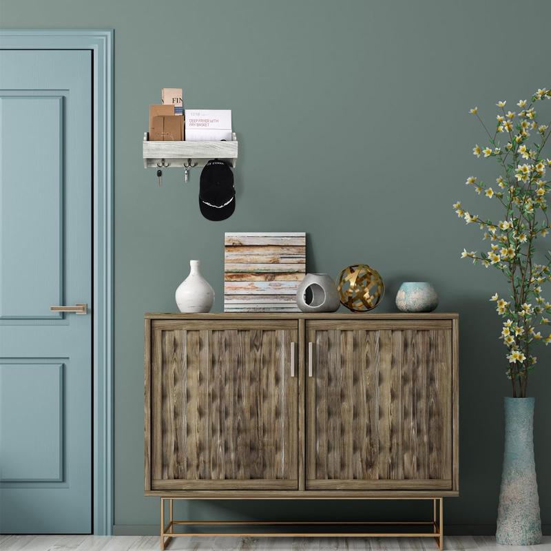 Mail & Key Holder Shelves , Mail Sorter Wall Mount with 3 Key Hooks Wooden Holder Mail Organizer Wall Mounted, Rustic Green Decor Wood