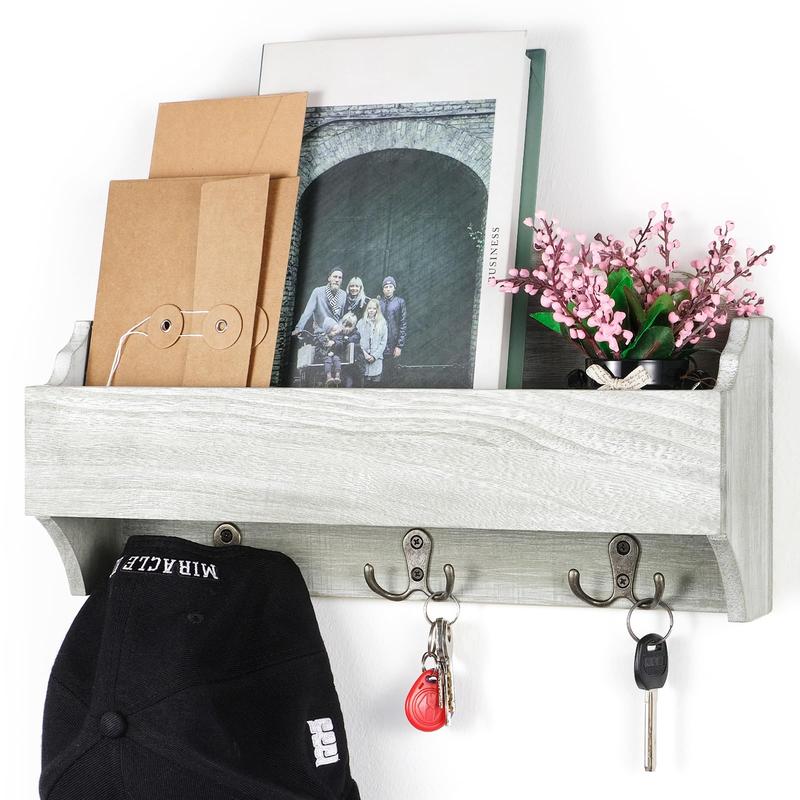 - Mail & Key Holder Organizer: The LIANTRAL mail holder organizer with 3 key hooks, allows you hang your coat, bag, keys, dog leash and cat collar with ease, it's also convenient to find and reach. Hang it in your entryway or hallway to add a touch of style to your storage.