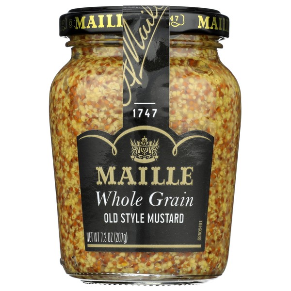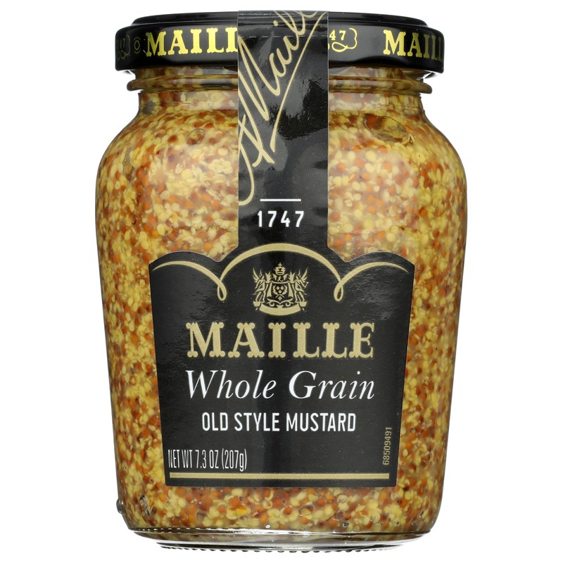 Maille Old Style mustard is made with crisp whole mustard seeds, has a grainy