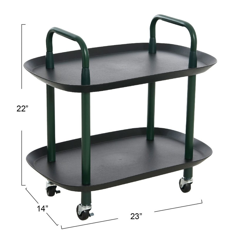 Main + Mesa Modern Plastic and Metal 2-Tier Trolley, Black and Dark Green
