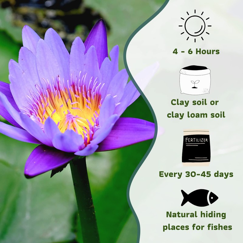 Mainam Mix Colorful Tropical Water Lily Tuber Live Aquarium Plant for Freshwater Fish Pond Balcony Buy 2 GET Fertilizer Free (Purple Nymphaea Panama Pacific)