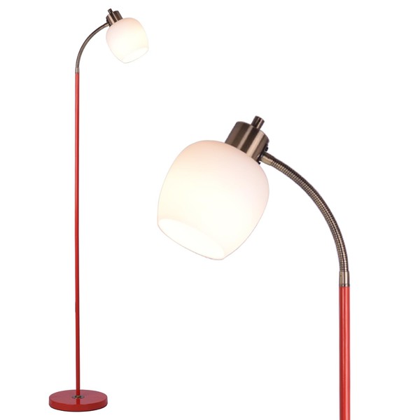 MAINDECO Gooseneck Floor Lamp,Height Adjustable,3 Color,Flexible Sofaside Reading Pole Lamp,Red Metal Bedside Light