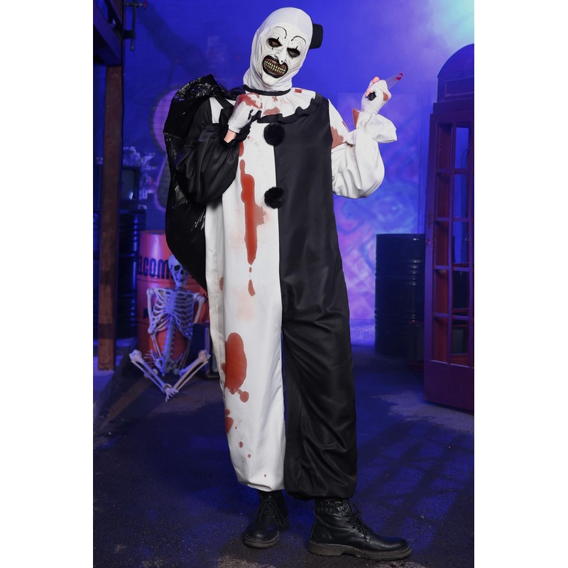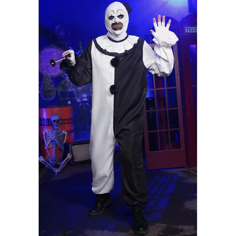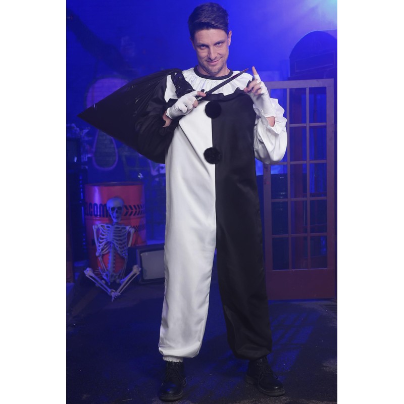 - CLOWN COSTUME: The design is inspired by the iconic character from the original horror movie, capturing the scary killer clown vibe with faithful film details. This 3-piece set includes a jumpsuit, gloves, and a metallic horn for a complete look.NO MASK INCLUDED