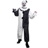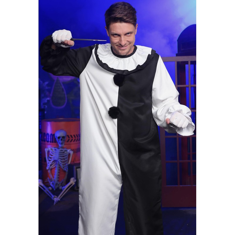 Mainfini 3 Pcs Haunted House Creepy Clown Costume Jumpsuit with Gloves and Metallic Horn Ideal for Costume Parties XXL