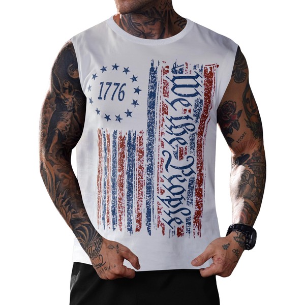 Mainfini Men American Flag Tank Tops Summer Casual Tee Graphic Classic Tshirt Novelty Print 4th of July Fourth Funny 1776 Tanks White 3XL