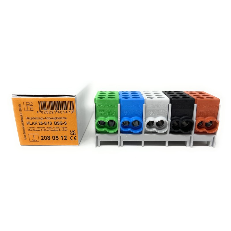 - Each clamp has a 2 x 25 mm² inlet and a 2 x 16 mm² outlet.