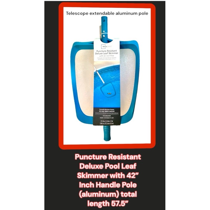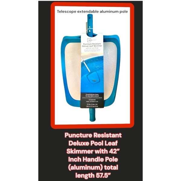 - Design/model is: Puncture Resistant Deluxe Pool Leaf Skimmer with 42” Inch Handle Pole (aluminum)